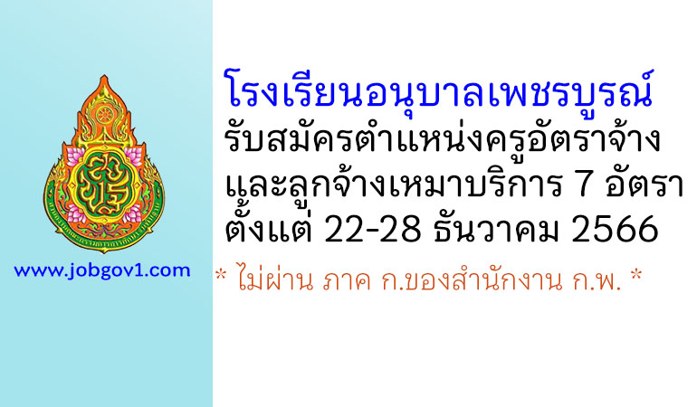 โรงเรียนอนุบาลเพชรบูรณ์ รับสมัครครูอัตราจ้าง และลูกจ้างเหมาบริการ 7 อัตรา ตั้งแต่วันที่ 22-28 ธันวาคม 2566