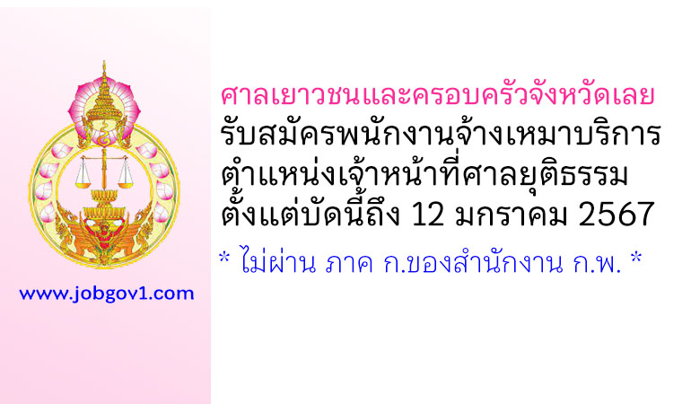 ศาลเยาวชนและครอบครัวจังหวัดเลย รับสมัครพนักงานจ้างเหมาบริการ ตำแหน่งเจ้าหน้าที่ศาลยุติธรรม ตั้งแต่บัดนี้ถึง 12 มกราคม 2567