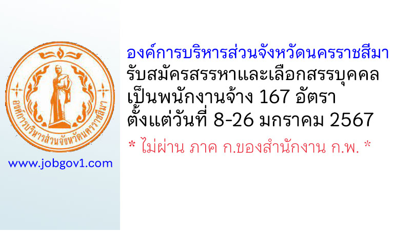องค์การบริหารส่วนจังหวัดนครราชสีมา รับสมัครสรรหาและเลือกสรรบุคคลเป็นพนักงานจ้าง 167 อัตรา ตั้งแต่วันที่ 8-26 มกราคม 2567