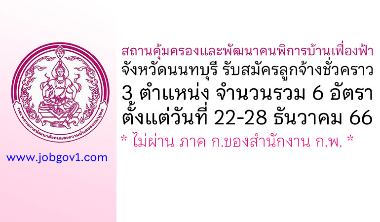 สถานคุ้มครองและพัฒนาคนพิการบ้านเฟื่องฟ้า จังหวัดนนทบุรี รับสมัครลูกจ้างชั่วคราว 6 อัตรา ตั้งแต่วันที่ 22-28 ธันวาคม 2566