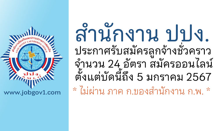 สำนักงานป้องกันและปราบปรามการฟอกเงิน รับสมัครลูกจ้างชั่วคราว 5 ตำแหน่ง 24 อัตรา ตั้งแต่บัดนี้ถึง 5 มกราคม 2567