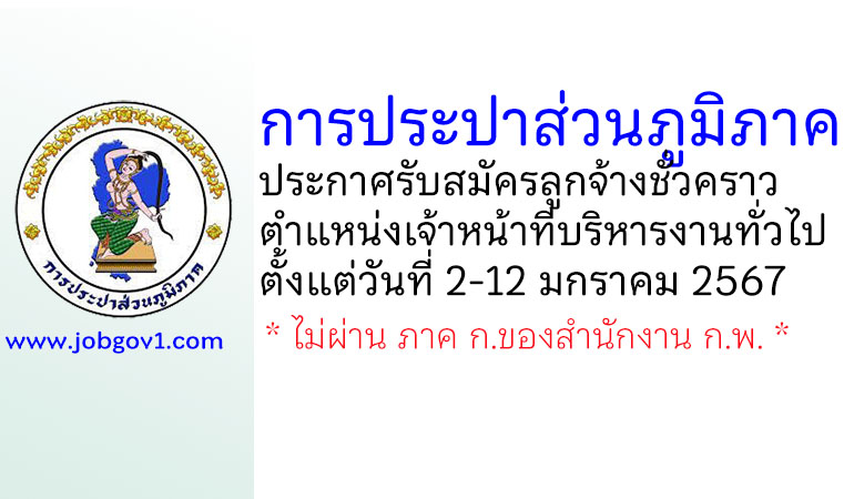 การประปาส่วนภูมิภาค รับสมัครลูกจ้างชั่วคราว ตำแหน่งเจ้าหน้าที่บริหารงานทั่วไป ตั้งแต่วันที่ 2-12 มกราคม 2567