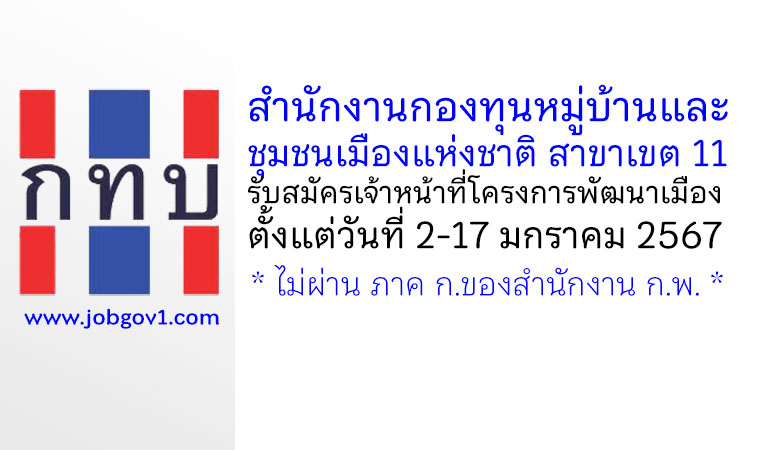 สำนักงานกองทุนหมู่บ้านและชุมชนเมืองแห่งชาติ สาขาเขต 11 รับสมัครลูกจ้างเหมา ตำแหน่งเจ้าหน้าที่โครงการพัฒนาเมือง ตั้งแต่วันที่ 2-17 มกราคม 2567