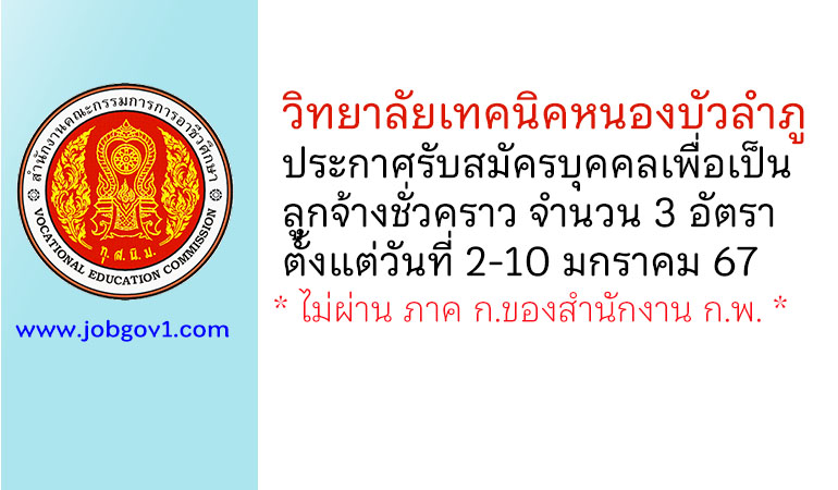 วิทยาลัยเทคนิคหนองบัวลำภู รับสมัครบุคคลเพื่อเป็นลูกจ้างชั่วคราว 3 อัตรา ตั้งแต่วันที่ 2-10 มกราคม 2567