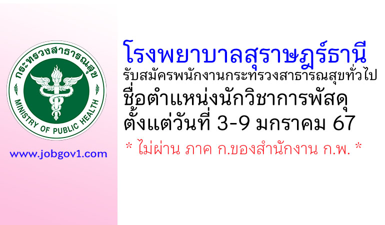 โรงพยาบาลสุราษฎร์ธานี รับสมัครพนักงานกระทรวงสาธารณสุขทั่วไป ตำแหน่งนักวิชาการพัสดุ ตั้งแต่วันที่ 3-9 มกราคม 2567
