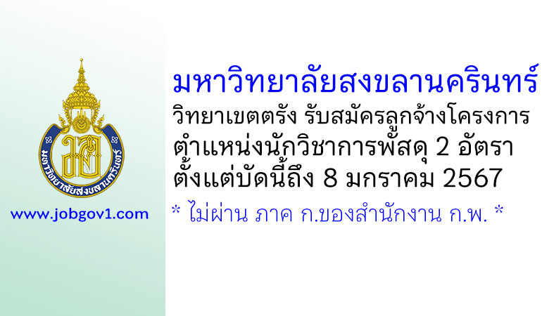 มหาวิทยาลัยสงขลานครินทร์ วิทยาเขตตรัง รับสมัครลูกจ้างโครงการ ตำแหน่งนักวิชาการพัสดุ 2 อัตรา ตั้งแต่บัดนี้ถึง 8 มกราคม 2567
