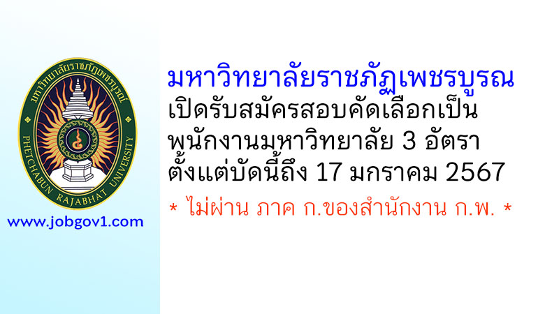 มหาวิทยาลัยราชภัฏเพชรบูรณ์ รับสมัครสอบคัดเลือกเป็นพนักงานมหาวิทยาลัย 3 อัตรา ตั้งแต่บัดนี้ถึง 17 มกราคม 2567