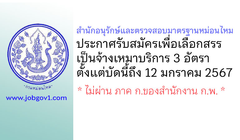 สำนักอนุรักษ์และตรวจสอบมาตรฐานหม่อนไหม รับสมัครเพื่อเลือกสรรเป็นจ้างเหมาบริการ 3 อัตรา ตั้งแต่บัดนี้ถึง 12 มกราคม 2567