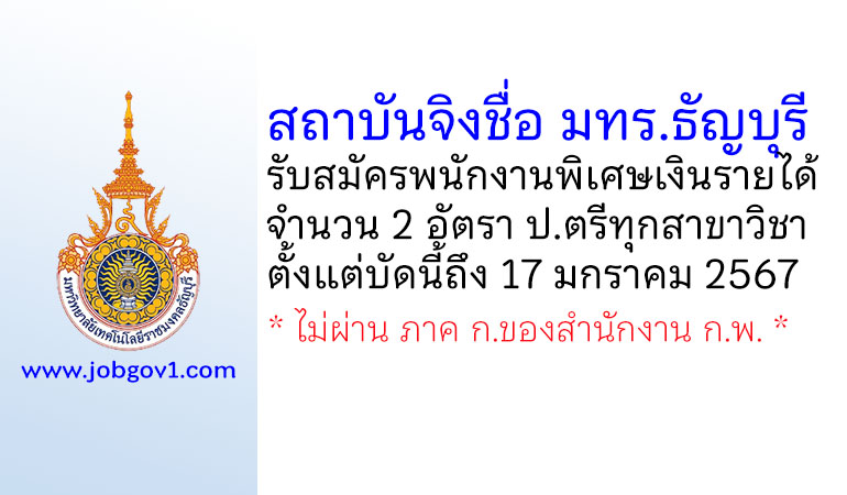 สถาบันจิงชื่อ มหาวิทยาลัยเทคโนโลยีราชมงคลธัญบุรี รับสมัครพนักงานพิเศษเงินรายได้ 2 อัตรา ตั้งแต่บัดนี้ถึง 17 มกราคม 2567