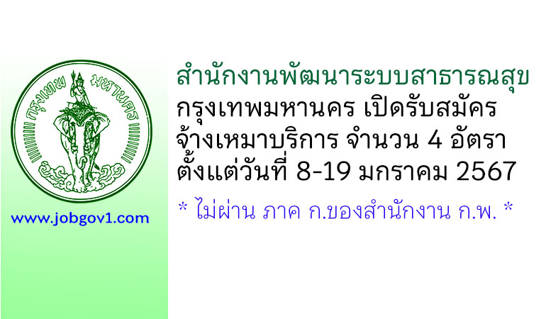 สำนักงานพัฒนาระบบสาธารณสุข กรุงเทพมหานคร รับสมัครจ้างเหมาบริการ 4 อัตรา ตั้งแต่วันที่ 8-19 มกราคม 2567