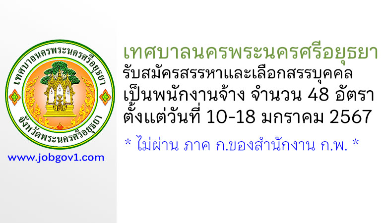 เทศบาลนครพระนครศรีอยุธยา รับสมัครสรรหาและเลือกสรรบุคคลเป็นพนักงานจ้าง 48 อัตรา ตั้งแต่วันที่ 10-18 มกราคม 2567