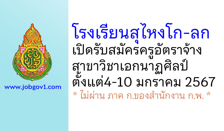 โรงเรียนสุไหงโก-ลก รับสมัครครูอัตราจ้าง สอนวิชานาฏศิลป์ ตั้งแต่วันที่ 4-10 มกราคม 2567