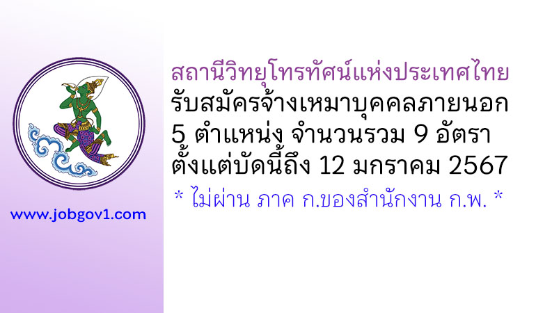 สถานีวิทยุโทรทัศน์แห่งประเทศไทย รับสมัครจ้างเหมาบุคคลภายนอก 9 อัตรา ตั้งแต่บัดนี้ถึง 12 มกราคม 2567