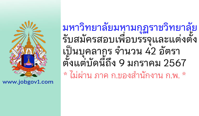 มหาวิทยาลัยมหามกุฏราชวิทยาลัย รับสมัครสอบเพื่อบรรจุและแต่งตั้งเป็นบุคลากร 42 อัตรา ตั้งแต่บัดนี้ถึง 9 มกราคม 2567