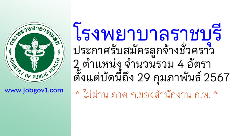 โรงพยาบาลราชบุรี รับสมัครลูกจ้างชั่วคราว 2 ตำแหน่ง 4 อัตรา ตั้งแต่บัดนี้ถึง 29 กุมภาพันธ์ 2567