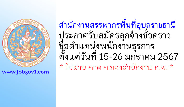 สำนักงานสรรพากรพื้นที่อุบลราชธานี รับสมัครลูกจ้างชั่วคราว ตำแหน่งพนักงานธุรการ ตั้งแต่วันที่ 15-26 มกราคม 2567