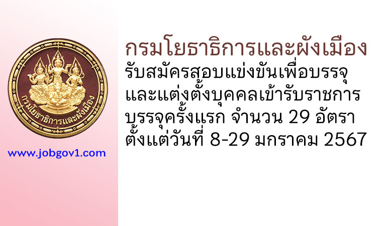 กรมโยธาธิการและผังเมือง รับสมัครสอบแข่งขันเพื่อบรรจุและแต่งตั้งบุคคลเข้ารับราชการ บรรจุครั้งแรก 29 อัตรา ตั้งแต่วันที่ 8-29 มกราคม 2567