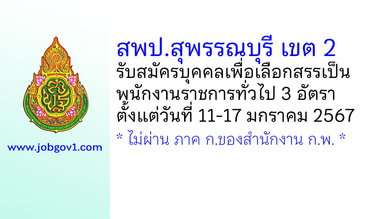 สพป.สุพรรณบุรี เขต 2 รับสมัครบุคคลเพื่อเลือกสรรเป็นพนักงานราชการทั่วไป 3 อัตรา ตั้งแต่วันที่ 11-17 มกราคม 2567