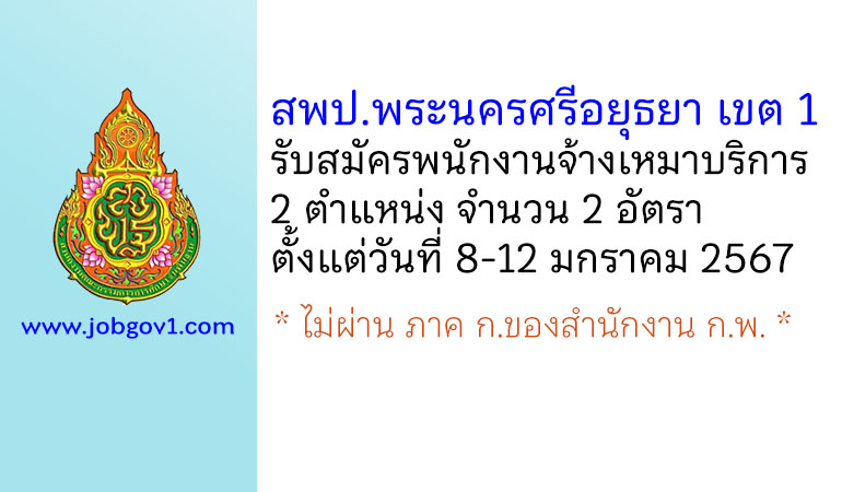 สพป.พระนครศรีอยุธยา เขต 1 รับสมัครพนักงานจ้างเหมาบริการ 2 อัตรา ตั้งแต่วันที่ 8-12 มกราคม 2567