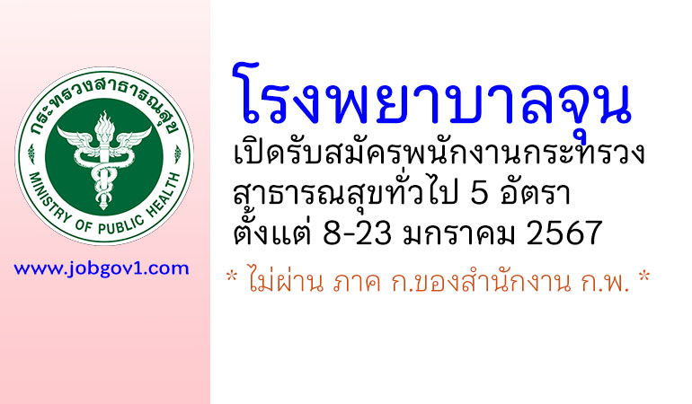 โรงพยาบาลจุน รับสมัครพนักงานกระทรวงสาธารณสุขทั่วไป 5 อัตรา ตั้งแต่วันที่ 8-23 มกราคม 2567