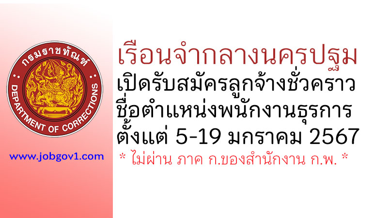 เรือนจำกลางนครปฐม รับสมัครลูกจ้างชั่วคราว ตำแหน่งพนักงานธุรการ ตั้งแต่วันที่ 5-19 มกราคม 2567
