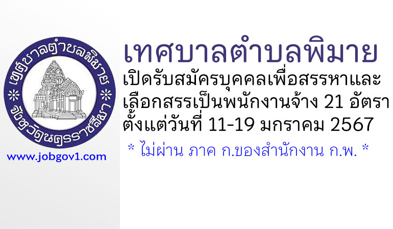 เทศบาลตำบลพิมาย รับสมัครบุคคลเพื่อสรรหาและเลือกสรรเป็นพนักงานจ้าง 21 อัตรา ตั้งแต่วันที่ 11-19 มกราคม 2567