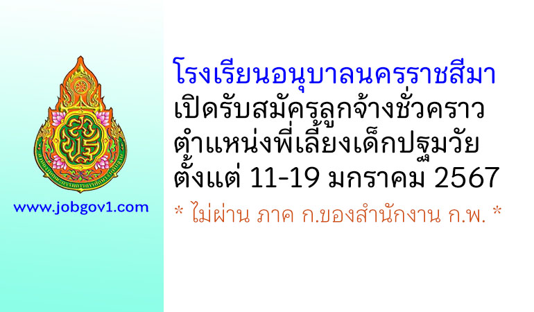 โรงเรียนอนุบาลนครราชสีมา รับสมัครลูกจ้างชั่วคราว ตำแหน่งพี่เลี้ยงเด็กปฐมวัย ตั้งแต่วันที่ 11-19 มกราคม 2567