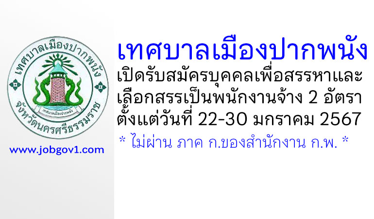 เทศบาลเมืองปากพนัง รับสมัครบุคคลเพื่อสรรหาและเลือกสรรเป็นพนักงานจ้าง 2 อัตรา ตั้งแต่วันที่ 22-30 มกราคม 2567