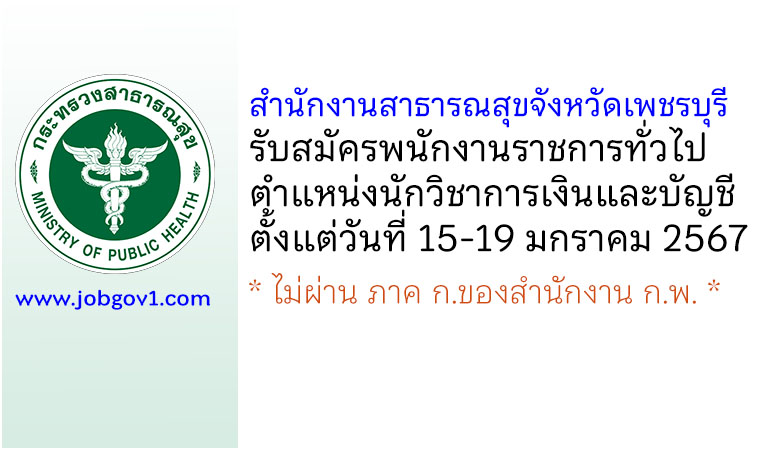 สำนักงานสาธารณสุขจังหวัดเพชรบุรี รับสมัครพนักงานราชการทั่วไป ตำแหน่งนักวิชาการเงินและบัญชี ตั้งแต่วันที่ 15-19 มกราคม 2567