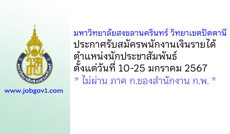 มหาวิทยาลัยสงขลานครินทร์ วิทยาเขตปัตตานี รับสมัครพนักงานเงินรายได้ ตำแหน่งนักประชาสัมพันธ์ ตั้งแต่วันที่ 10-25 มกราคม 2567