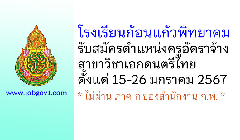 โรงเรียนก้อนแก้วพิทยาคม รับสมัครครูอัตราจ้าง สาขาวิชาเอกดนตรีไทย ตั้งแต่วันที่ 15-26 มกราคม 2567