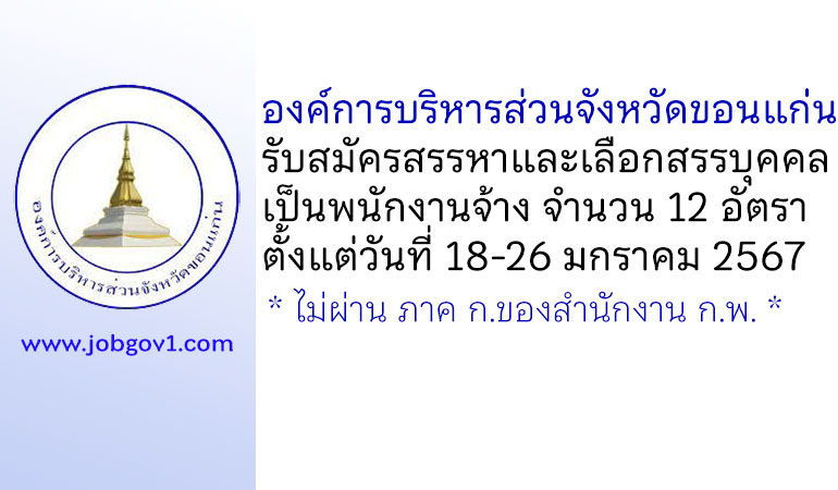 องค์การบริหารส่วนจังหวัดขอนแก่น รับสมัครสรรหาและเลือกสรรบุคคลเป็นพนักงานจ้าง 12 อัตรา ตั้งแต่วันที่ 18-26 มกราคม 2567