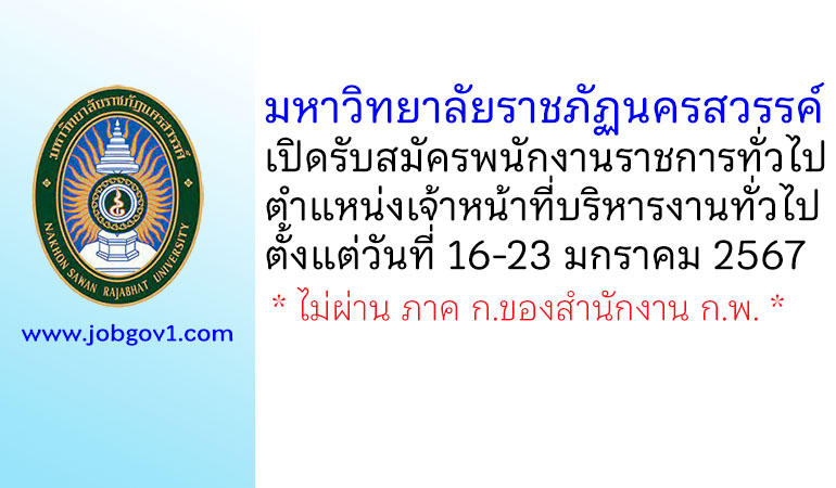 มหาวิทยาลัยราชภัฏนครสวรรค์ รับสมัครพนักงานราชการทั่วไป ตำแหน่งเจ้าหน้าที่บริหารงานทั่วไป ตั้งแต่วันที่ 16-23 มกราคม 2567