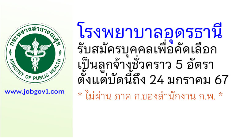 โรงพยาบาลอุดรธานี รับสมัครบุคคลเพื่อคัดเลือกเป็นลูกจ้างชั่วคราว 5 อัตรา ตั้งแต่บัดนี้ถึง 24 มกราคม 2567