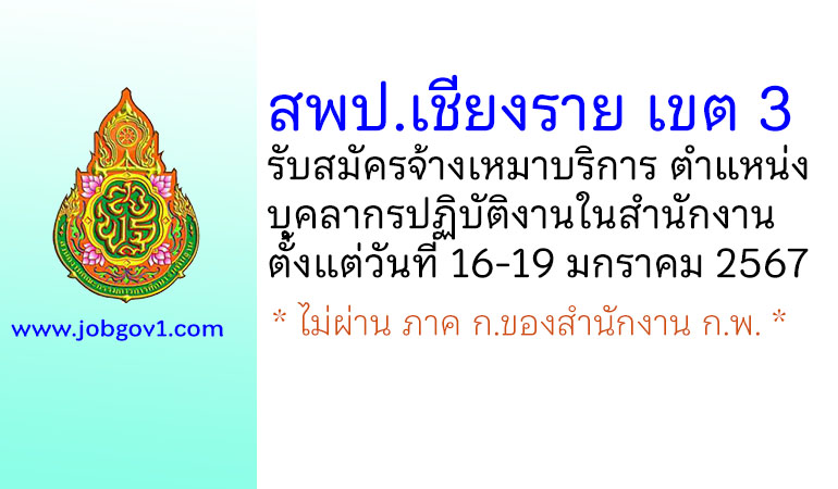 สพป.เชียงราย เขต 3 รับสมัครลูกจ้างเหมาบริการ ตำแหน่งบุคลากรปฏิบัติงานในสำนักงาน ตั้งแต่วันที่ 16-19 มกราคม 2567