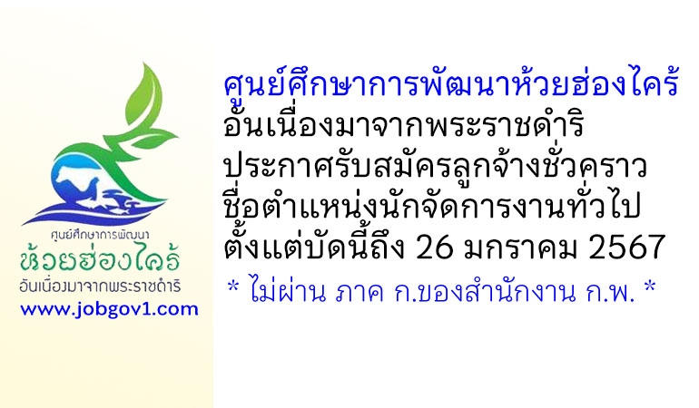 ศูนย์ศึกษาการพัฒนาห้วยฮ่องไคร้ฯ รับสมัครลูกจ้างชั่วคราว ตำแหน่งนักจัดการงานทั่วไป ตั้งแต่บัดนี้ถึง 26 มกราคม 2567