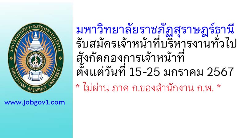มหาวิทยาลัยราชภัฏสุราษฎร์ธานี รับสมัครเจ้าหน้าที่บริหารงานทั่วไป สังกัดกองการเจ้าหน้าที่ ตั้งแต่วันที่ 15-25 มกราคม 2567