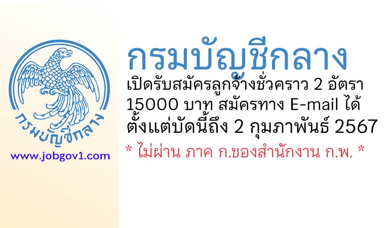 กรมบัญชีกลาง รับสมัครลูกจ้างชั่วคราว 2 อัตรา ตั้งแต่บัดนี้ถึง 2 กุมภาพันธ์ 2567