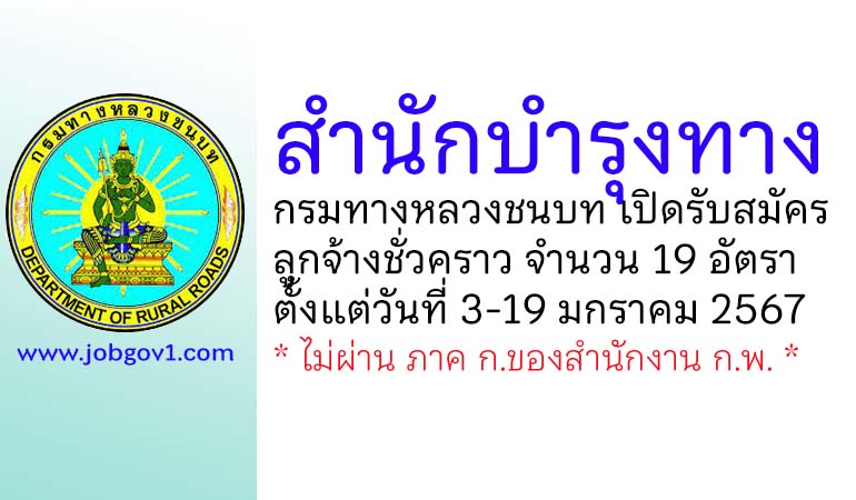สำนักบำรุงทาง กรมทางหลวงชนบท รับสมัครลูกจ้างชั่วคราว 19 อัตรา ตั้งแต่วันที่ 3-19 มกราคม 2567