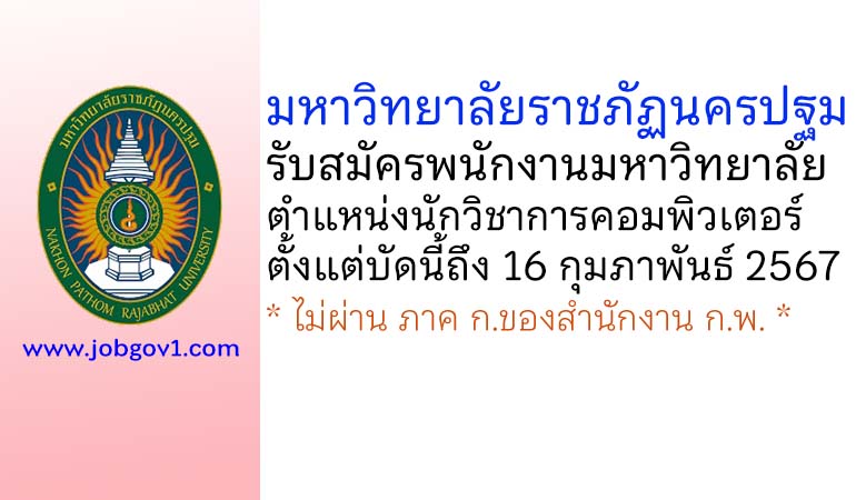 มหาวิทยาลัยราชภัฏนครปฐม รับสมัครพนักงานมหาวิทยาลัย ตำแหน่งนักวิชาการคอมพิวเตอร์ ตั้งแต่บัดนี้ถึง 16 กุมภาพันธ์ 2567