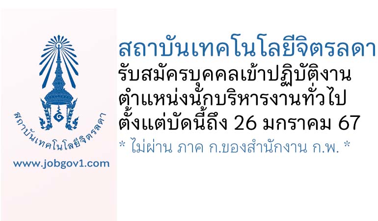 สถาบันเทคโนโลยีจิตรลดา รับสมัครบุคคลเข้าปฏิบัติงาน ตำแหน่งนักบริหารงานทั่วไป ตั้งแต่บัดนี้ถึง 26 มกราคม 2567
