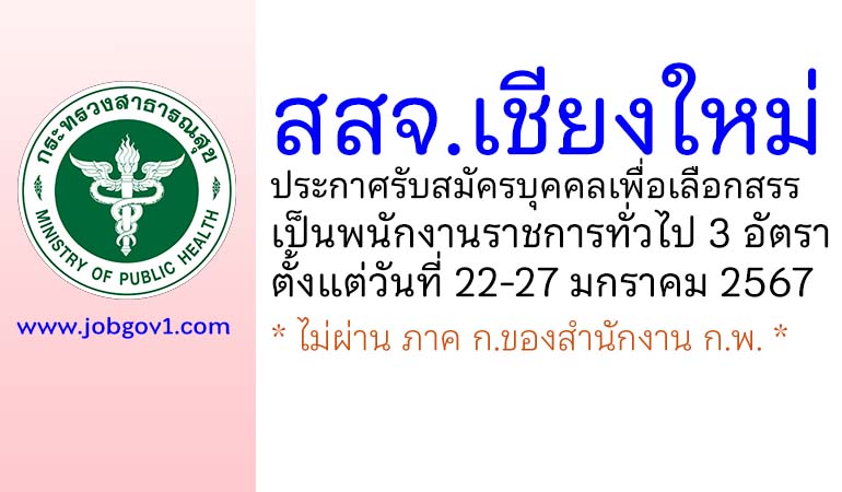 สสจ.เชียงใหม่ รับสมัครบุคคลเพื่อเลือกสรรเป็นพนักงานราชการทั่วไป 3 อัตรา ตั้งแต่วันที่ 22-27 มกราคม 2567