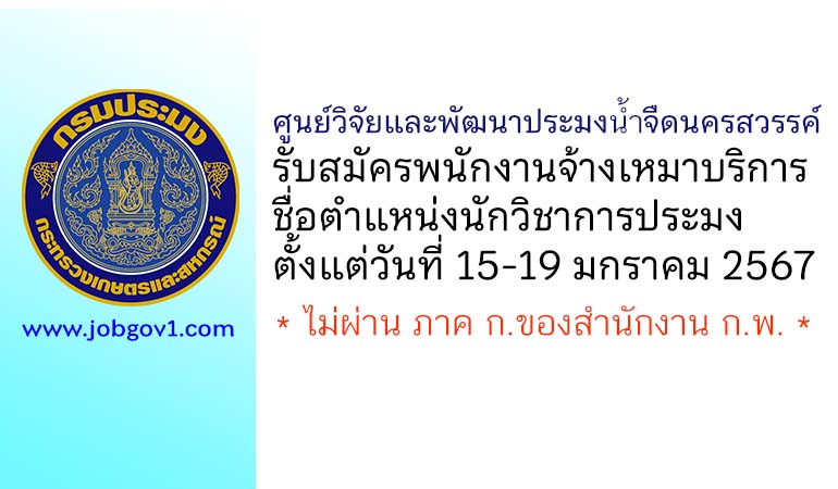 ศูนย์วิจัยและพัฒนาประมงน้ำจืดนครสวรรค์ รับสมัครพนักงานจ้างเหมาบริการ ตำแหน่งนักวิชาการประมง ตั้งแต่วันที่ 15-19 มกราคม 2567