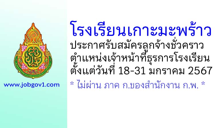 โรงเรียนเกาะมะพร้าว รับสมัครลูกจ้างชั่วคราว ตำแหน่งเจ้าหน้าที่ธุรการโรงเรียน ตั้งแต่วันที่ 18-31 มกราคม 2567
