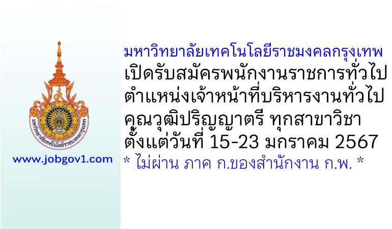 มหาวิทยาลัยเทคโนโลยีราชมงคลกรุงเทพ รับสมัครพนักงานราชการทั่วไป ตำแหน่งเจ้าหน้าที่บริหารงานทั่วไป ตั้งแต่วันที่ 15-23 มกราคม 2567