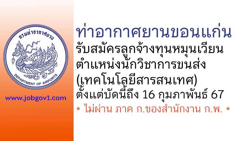 ท่าอากาศยานขอนแก่น รับสมัครลูกจ้างทุนหมุนเวียน ตำแหน่งนักวิชาการขนส่ง (เทคโนโลยีสารสนเทศ) ตั้งแต่บัดนี้ถึง 16 กุมภาพันธ์ 2567