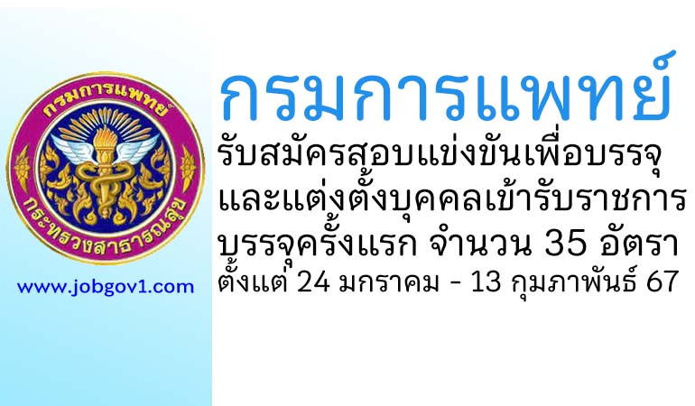 กรมการแพทย์ รับสมัครสอบแข่งขันเพื่อบรรจุและแต่งตั้งบุคคลเข้ารับราชการ บรรจุครั้งแรก 35 อัตรา ตั้งแต่ 24 มกราคม – 13 กุมภาพันธ์ 2567