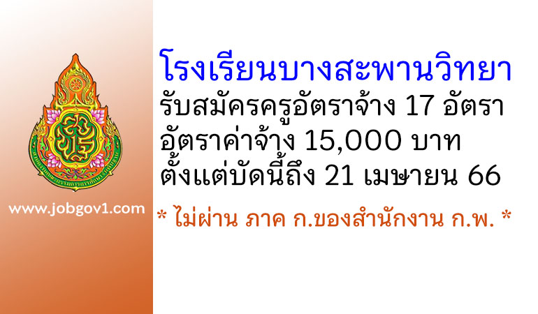 โรงเรียนบางสะพานวิทยา รับสมัครครูอัตราจ้าง 17 อัตรา ตั้งแต่บัดนี้ถึง 21 เมษายน 2566