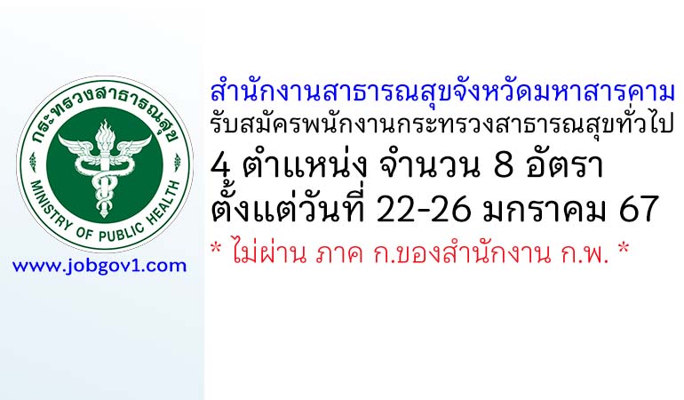 สำนักงานสาธารณสุขจังหวัดมหาสารคาม รับสมัครพนักงานกระทรวงสาธารณสุขทั่วไป 8 อัตรา ตั้งแต่วันที่ 22-26 มกราคม 2567