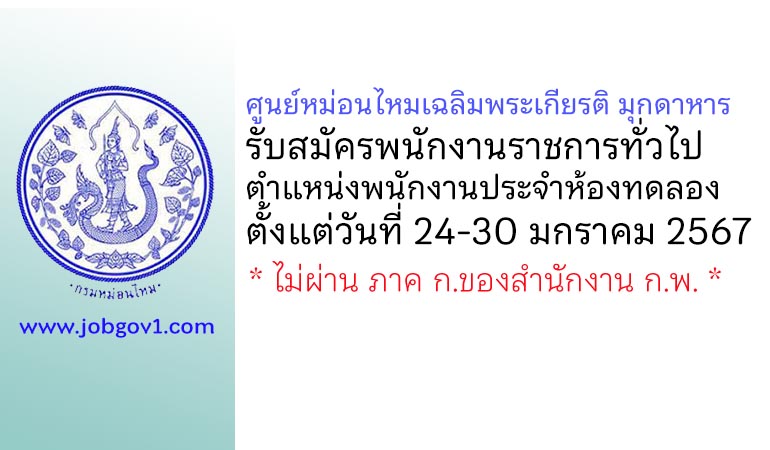 ศูนย์หม่อนไหมเฉลิมพระเกียรติ มุกดาหาร รับสมัครพนักงานราชการทั่วไป ตำแหน่งพนักงานประจำห้องทดลอง ตั้งแต่วันที่ 24-30 มกราคม 2567